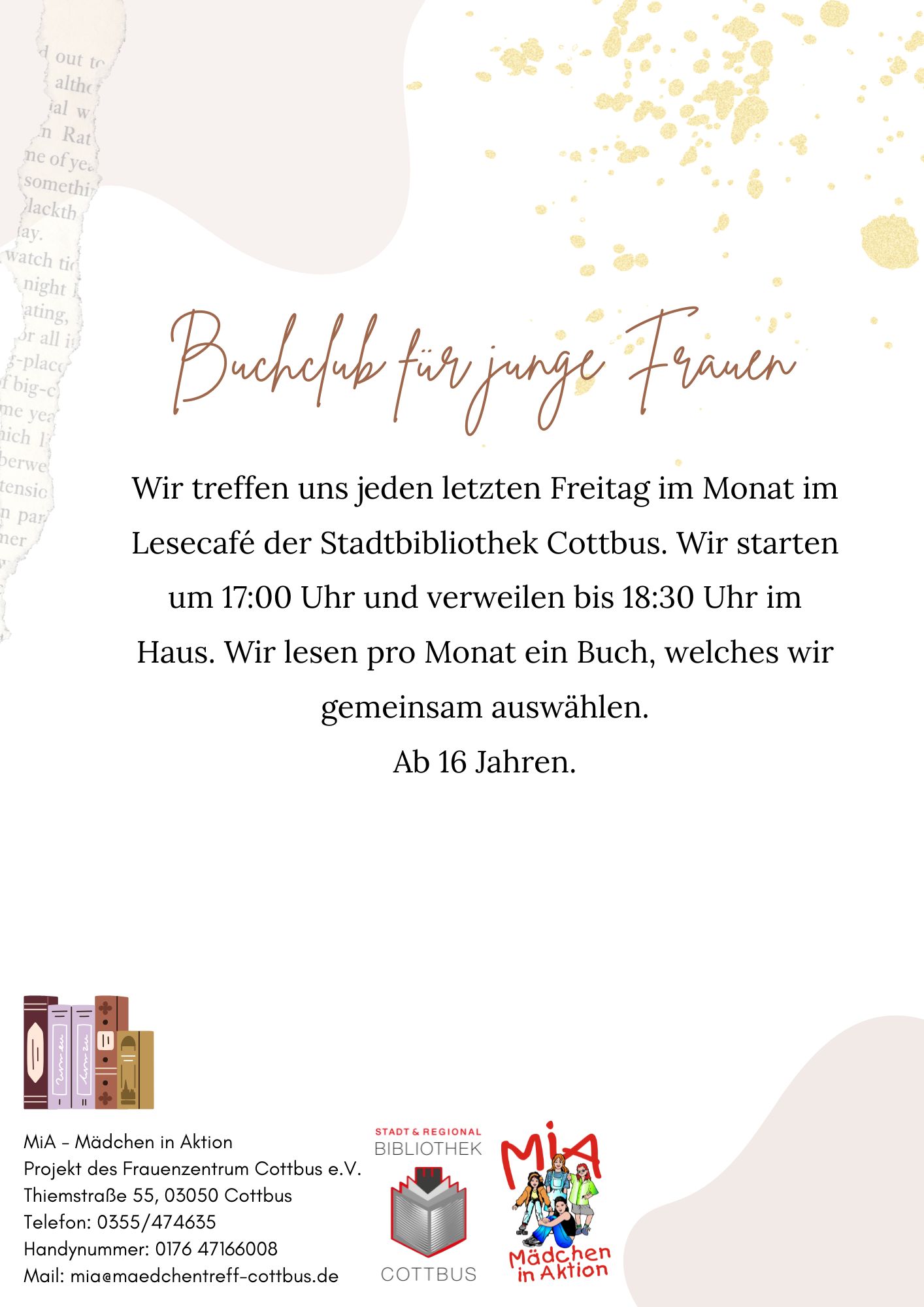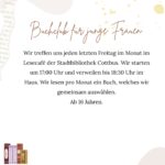Buchclub für junge Frauen: Wir treffen uns am 19. Dezember um 17:00 Uhr wieder in der Stadt- und Regionalbibliothek für eine neue Talkrunde rund um das Buch. Im neuen Jahr sehen wir uns dann am 30. Januar ab 16:00 Uhr wieder.