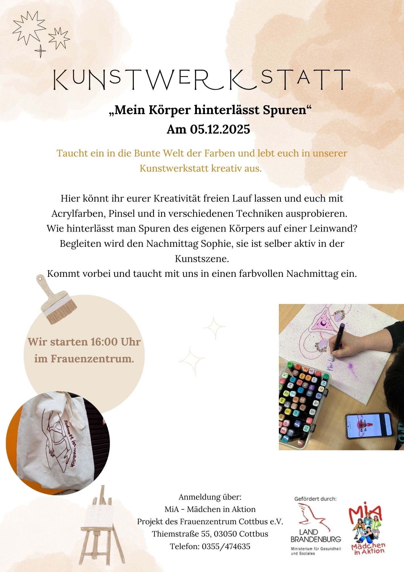 Kunstwerkstatt: Unsere Kunstwerkstatt findet ihr hier im Treff um 16:00 Uhr am 05. Dezember. Kommt vorbei und lebt euch mit uns kreativ aus.