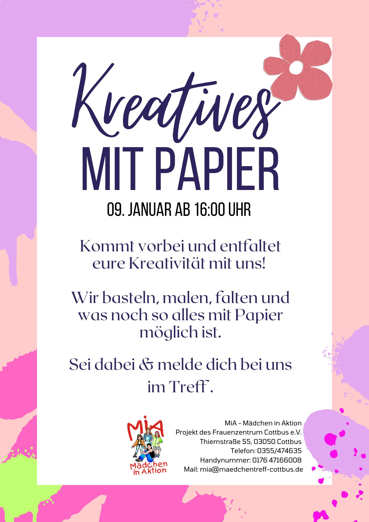 Kreatives mit Papier: Wir stellen euch am 16. Januar ab 15:00 Uhr unsere Papiersammlung zur Verfügung. Ihr könnt malen, basteln, falten, Karten schreiben – oder tun was auch immer euch