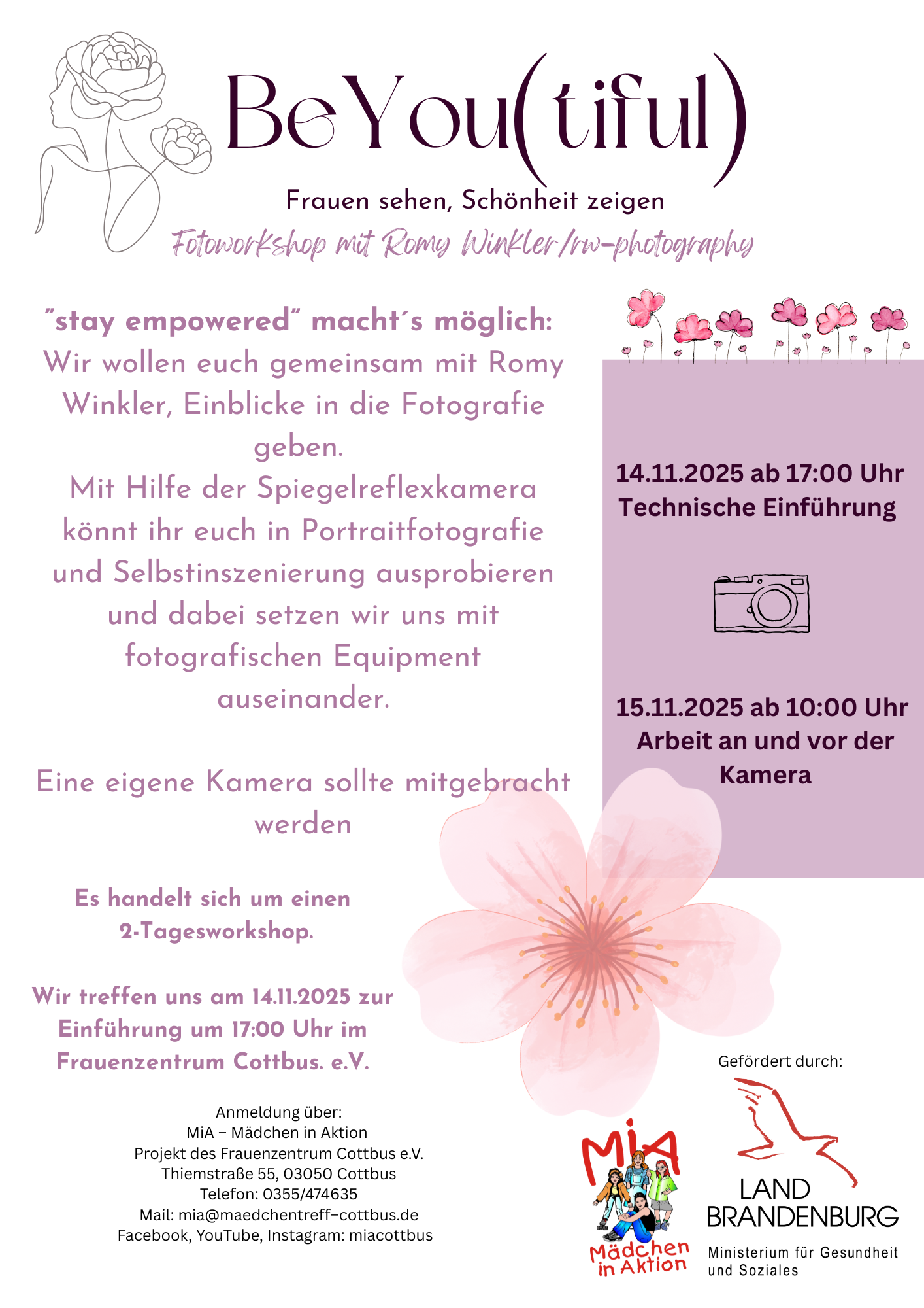 Das Projekt wird durch eine Abwandlung und Weiterentwicklung unter dem Namen “stay empowered – Kunst & Körper – Ein feministisches Empowerment-Projekt für MINTA und junge Frauen in Cottbus” weitergeführt. Das Projekt läuft vom 01.08.2025 bis 31.12.2025.