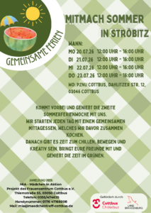 In den Sommerferien unterstützen wir verschiede Projekte und Kooperationen und somit präsentieren wir euch ein buntes Programm für die Sommerferien. Die ersten Termine, Angebote und Vorhaben stehen und ihr könnt euch ab jetzt informieren und anmelden: